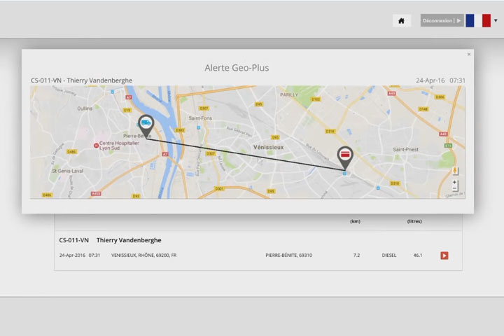 Chaque jour, les véhicules de votre flotte ont un travail à effectuer, à un certain endroit et à une certaine heure. Notre système puissant de suivi des véhicules vous alerte automatiquement si des véhicules sont utilisés en dehors des heures de travail ou qu’ils s’écartent de leur itinéraire. Voilà une manière facile de garder le contrôle et de vous assurer que vos véhicules sont toujours là où ils sont censés l’être.