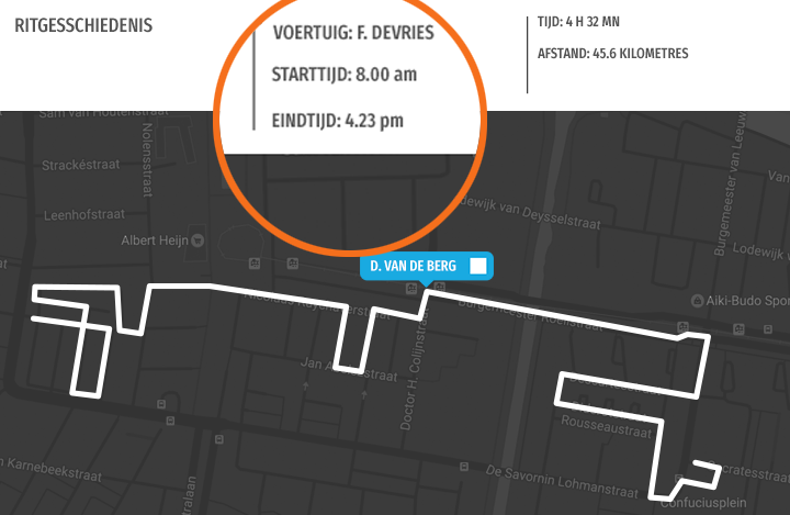 Elke dag worden uw bedrijfsvoertuigen gebruikt, op een bepaalde plek, op een bepaalde tijd. Ons krachtige voertuigtrackingsysteem geeft u automatisch een melding wanneer uw voertuigen buiten werkuren rijden of van hun route afwijken. Het is een eenvoudige manier om de controle te behouden en ervoor te zorgen dat uw voertuigen altijd zijn waar ze moeten zijn.